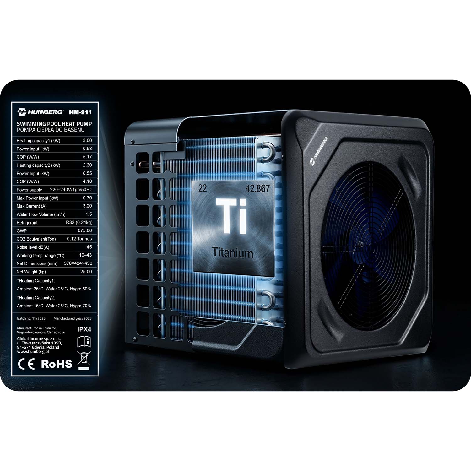 Pompa została zaprojektowana z myślą o oszczędnym zużyciu energii. Jej pobór mocy wynosi około 700 W, co oznacza, że jest porównywalny z wieloma urządzeniami używanymi na co dzień w domu. W praktyce zużywa znacznie mniej energii niż np. czajnik elektryczny, dzięki czemu podgrzewanie wody w basenie nie powoduje wysokich rachunków za prąd. To rozwiązanie, które łączy wydajność ogrzewania z ekonomiczną pracą urządzenia.